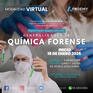 El Diplomado pretende dar a conocer los distintos ámbitos de aplicación de la Química Forense, ya que es considerada una de las especialidades más importantes dentro de la Investigación de delitos y por tanto en coadyuvar en la procuración de justicia, debido a que un gran número de indicios relacionados con los diferentes delitos, son de características químicas y biológicas.
